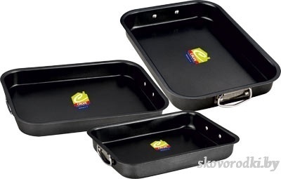 Углеродистая стальТолщина мaтepиaлa : 0,6 ммАнтипригарное покрытиеПригодны для мытья в посудомоечной машинеРазмеры: 27х20 / 32х22 / 34,5х24,5 см