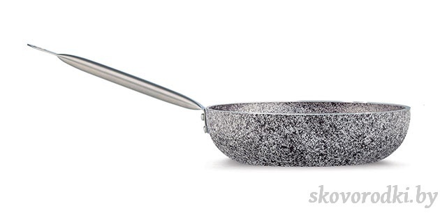 Сковорода имеет эксклюзивное износостойкое покрытие, усиленное частицами твердых минералов. Минеральная основа покрытия обеспечивает устойчивость покрытия к царапинам.